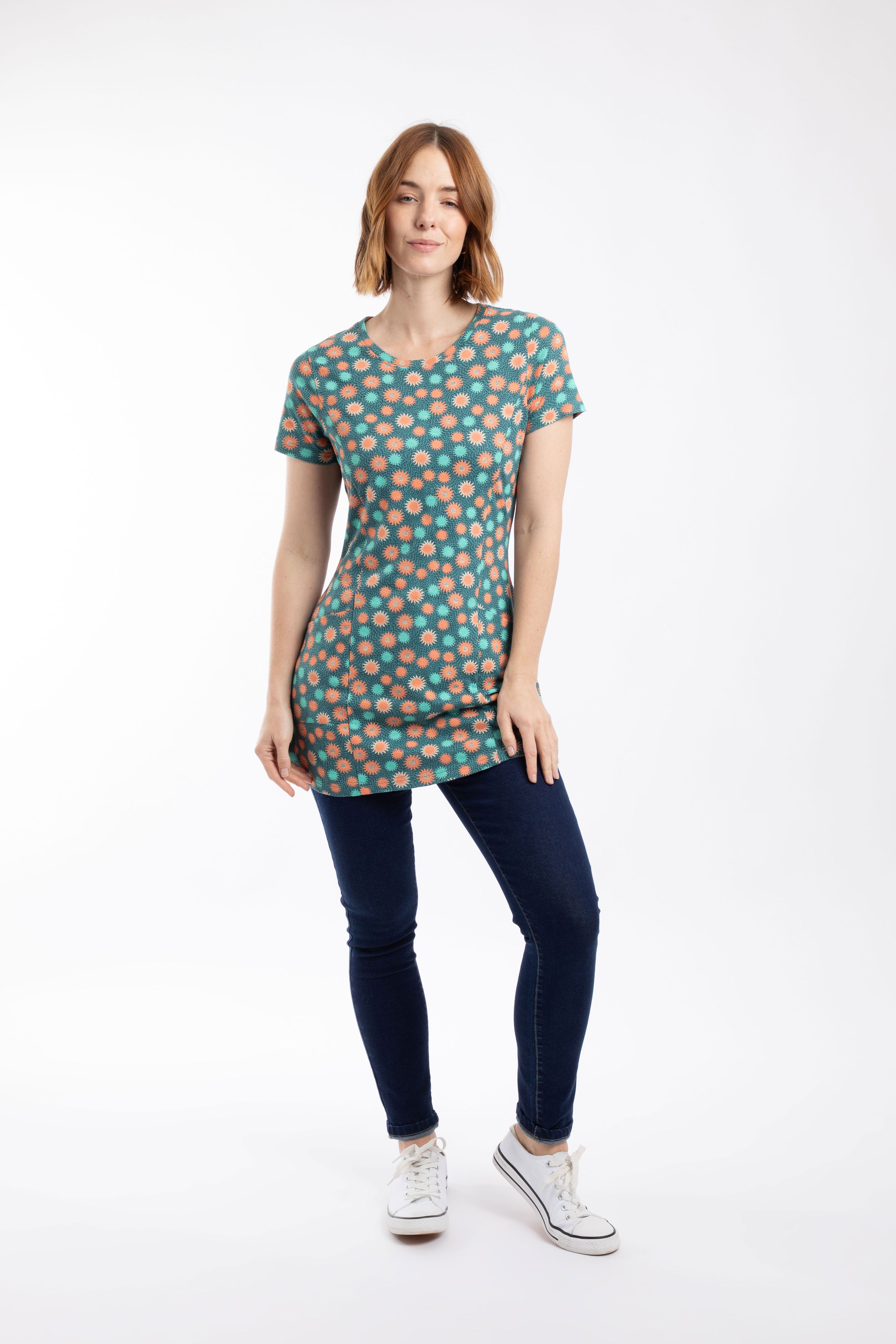 The cute and flirty Sidra Printed Jersey Slub Tunic comes in a range of unique all over prints for the season. Shorter than a dress, but longer than a top, this tunic length can be worn over trousers of leggings, and the floaty fit is really flattering to all shapes and sizes.