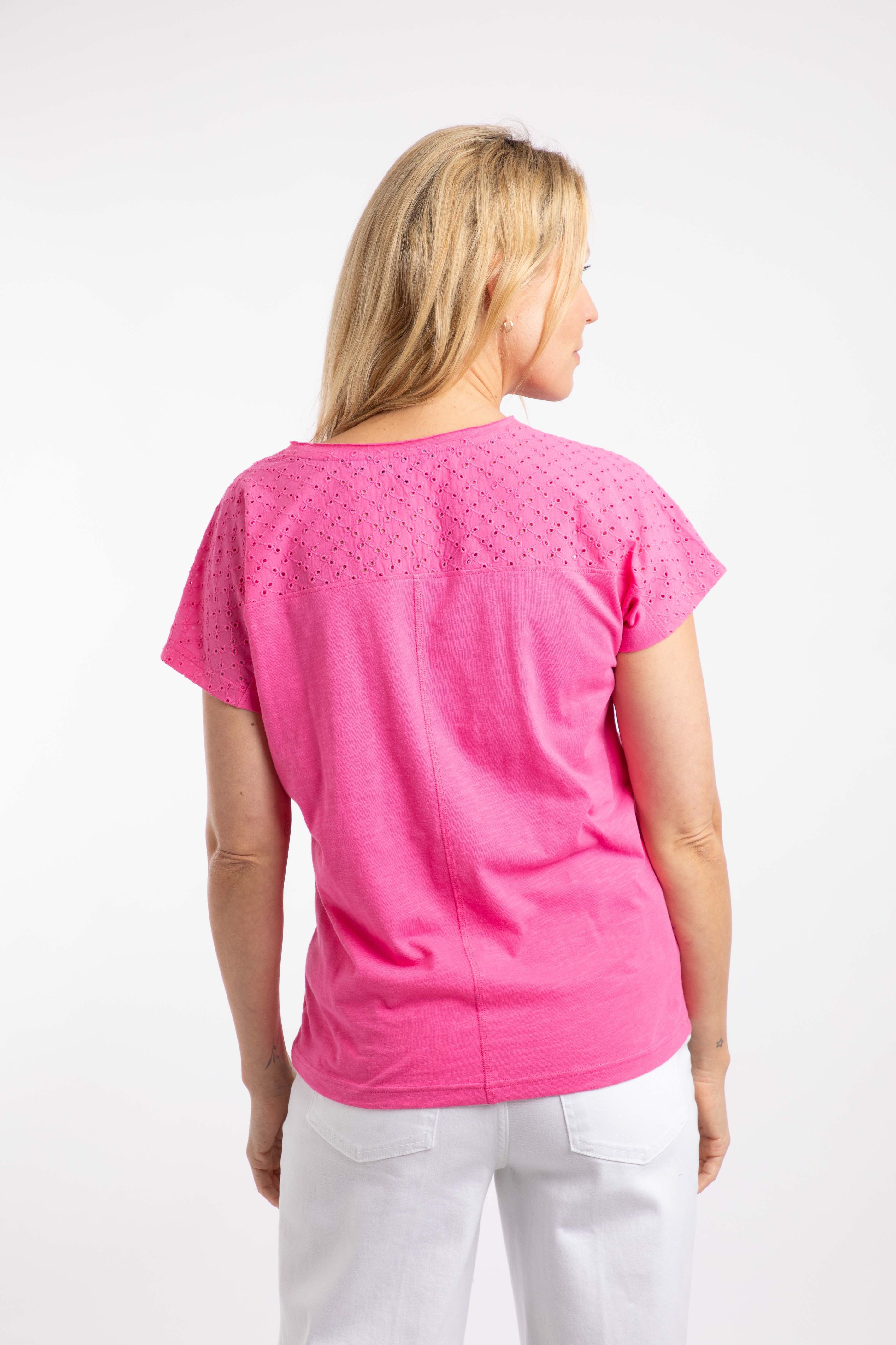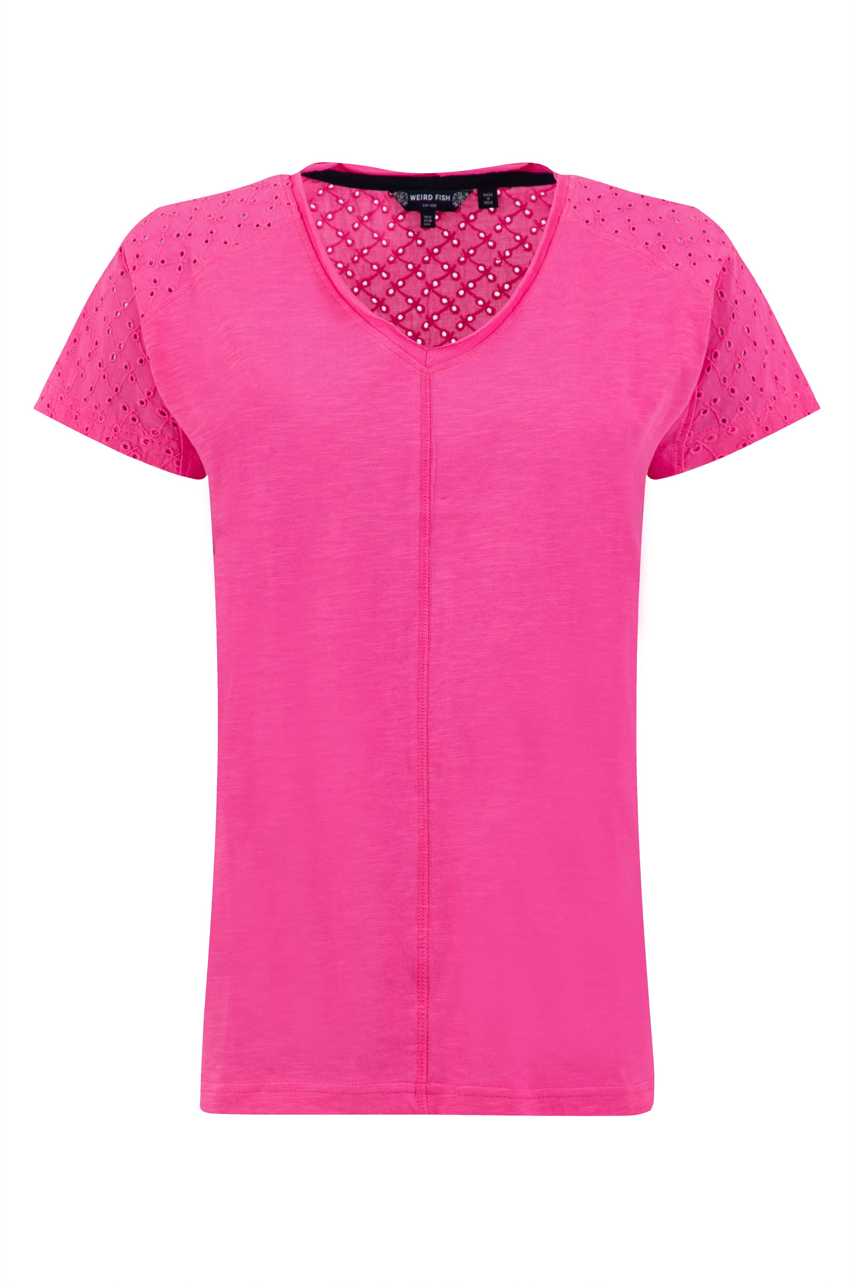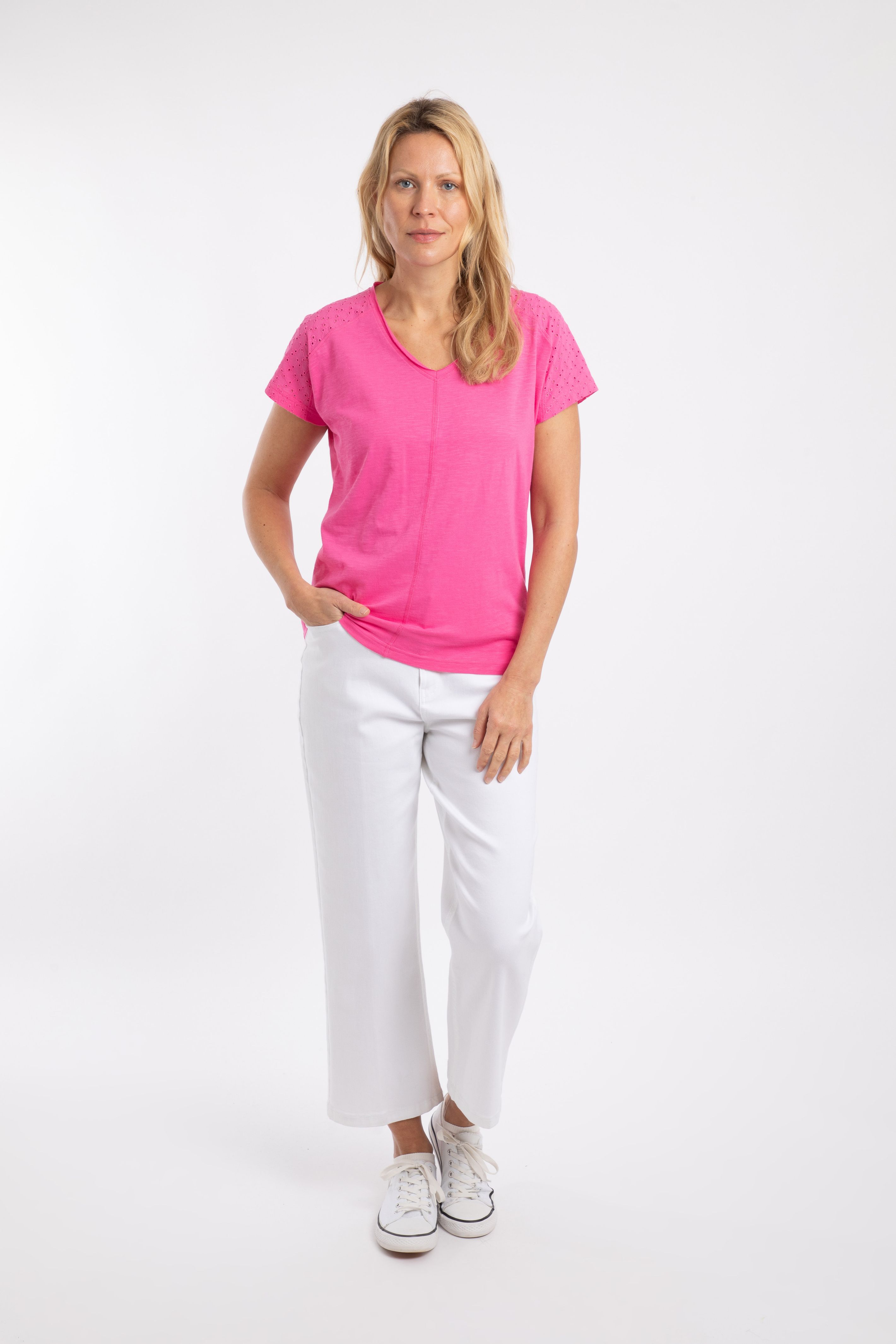 Your new favourite outfitting T-Shirt is here! The Pernille Cutaway T-Shirt features eyelet embroidery on the shoulders and back - the perfect pretty detailing to add to your summer looks.